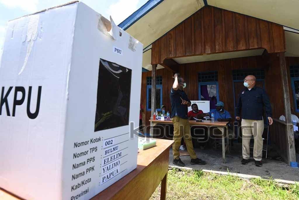 Yalimo, kpu.go.id - Pemungutan Suara Ulang (PSU) Pemilihan Bupati dan Wakil Bupati Yalimo, 2020, Rabu (26/1/2022) berlangsung damai dan lancar. PSU pasca putusan Mahkamah Konstitusi (MK) Nomor 145/PHP.BUP-XIX/2021 ini turut di monitoring langsung Ketua Komisi Pemilihan Umum (KPU) RI, Ilham Saputra serta Anggota KPU RI Pramono Ubaid Tanthowi.