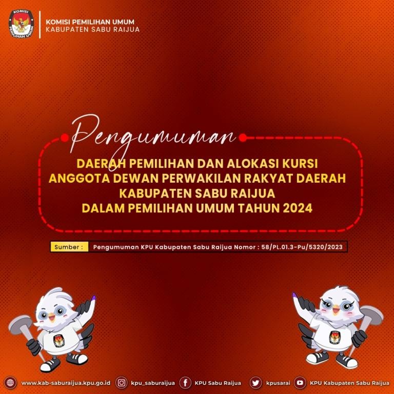 DAERAH PEMILIHAN DAN ALOKASI KURSI ANGGOTA DEWAN PERWAKILAN RAKYAT DAERAH KABUPATEN SABU RAJUA DALAM PEMILIHAN UMUM TAHUN 2024 Senin, 13 Februari 2023 00:00 734 Download Baca Selengkapnya