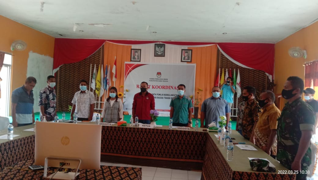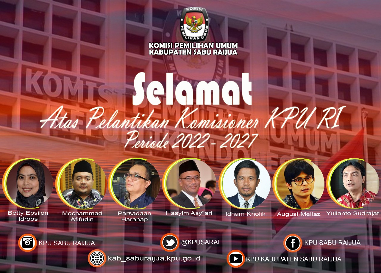Seba -- Selasa (12/04/22) Resmi dilakukan Pelantikan kepada tujuh orang Komisioner Komisi Pemilihan Umum Republik Indonesia Periode Tahun 2022-2027. Acara Pelantikan ini dilakukan dan diikuti oleh semuaKPU Provinsi/KIP Aceh dan KPU/KIP Kabupaten Kota di seluruh Indonesia. Acara pelantikan yang dilakukan secara Hybird, yakni secara Daring dan Luring ditayangkan secara Live. Acara ini juga ditandai dengan adanya Serah Terima Jabatan kepada Anggota KPU RI Periode Tahun 2022-2027. Sebelumnya juga dilakukan Apel Penyambutan Anggota KPU RI Periode Tahun 2022-2027 dan diikuti oleh seluruh Komisi Pemilihan Umum yang dilakukan secara daring pada satuan kerja masing-masing. Kegiatan ini juga dilaksanakan pada KPU Sabu Raijua yang dilakukan pada Lobby Kantor KPU Sabu Raijua yang diikuti oleh jajaran KPU Sabu Raijua. Tampak Sekretaris KPU Sabu Raijua, Jeferson A. Nalenan bersama para Kasubbag beserta staff sedang mengikuti Apel Penyambutan. Acara yang kemudian dilanjutkan dengan serah terima Jabatan juga tetap dilakukan secara daring serta diikuti oleh Ketua, Anggota dan Sekretaris KPU Sabu Raijua masih dari tempat yang sama. Dengan pelantikan terhadap tujuh orang Komisioner Komisi Pemilihan Umum Republik Indonesia periode 2022-2027 dan ditetapkannya Hasyim Asya'ri Sebagai Ketua Komisi Pemilihan Umum Republik Indonesia periode 2022-2027 ini tentunya akan tetap menjadi penyemangat dalam proses persiapan menuju tahapan 2024 sampai dengan pelaksanaannya, serta Ucapan terima kasih yang sangat besar diberikan kepada Ketua dan Anggota Komisi Pemilihan Umum Republik Indonesia periode 2017-2022 atas dedikasinya yang luar biasa.