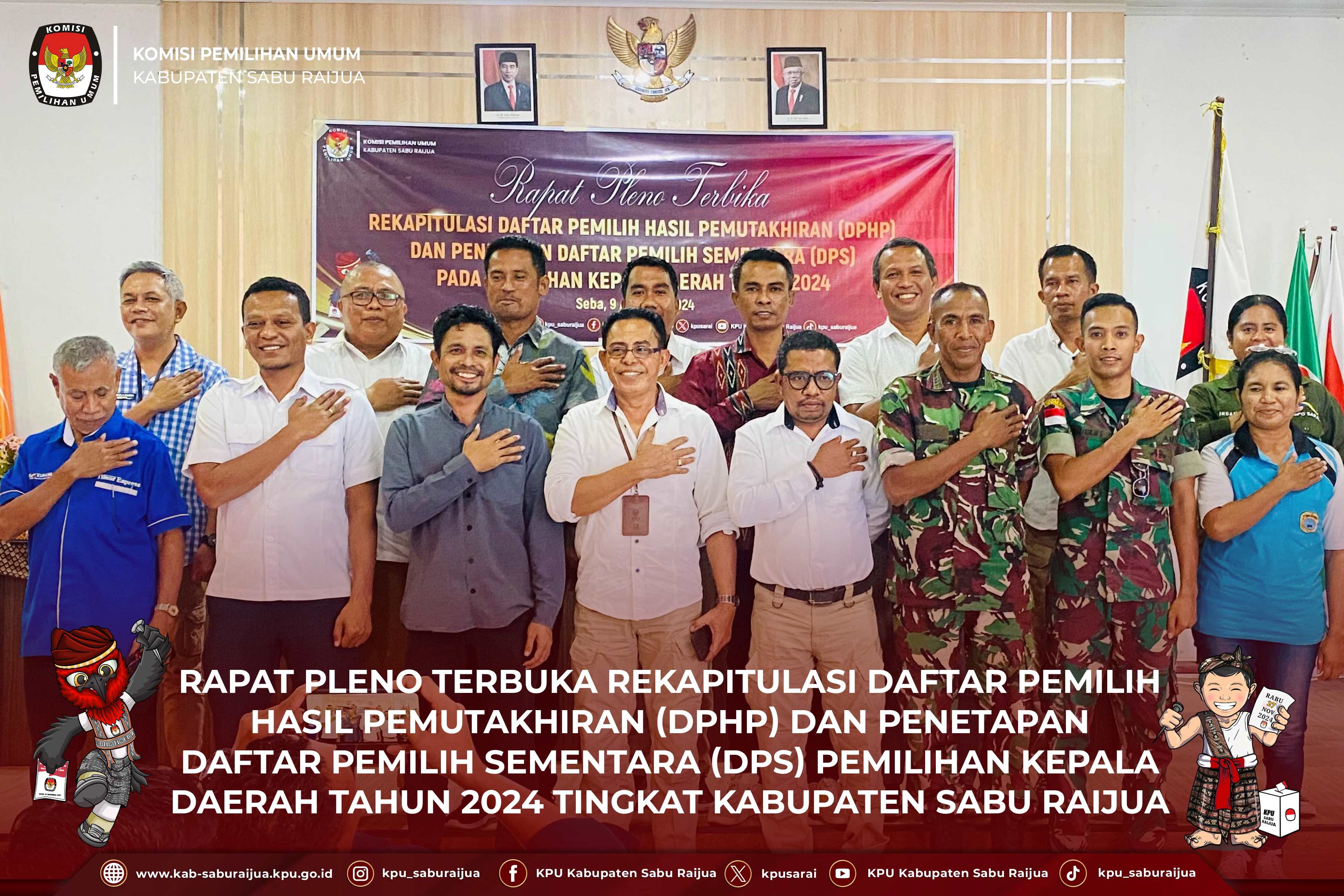 Seba, Kab-Saburaijua.kpu.go.id - Sesuai dengan jadwal tahapan pemilihan Gubernur dan Wakil Gubernur, Bupati dan Wakil Bupati, serta Walikota dan Wakil Walikota, hari ini (22/09/2024) KPU Kabupaten Sabu Raijua melakukan Rapat Pleno Tertutup Penetapan Pasangan Calon Peserta Pemilihan Bupati dan Wakil Bupati Sabu Raijua Tahun 2024. Bertempat di Kantor KPU Sabu Raijua, Rapat Pleno Tertutup ini dilakukan dengan metode Hybird dengan dihadiri oleh Ketua, Anggota, Sekretaris, dan Para Pejabat Struktural.