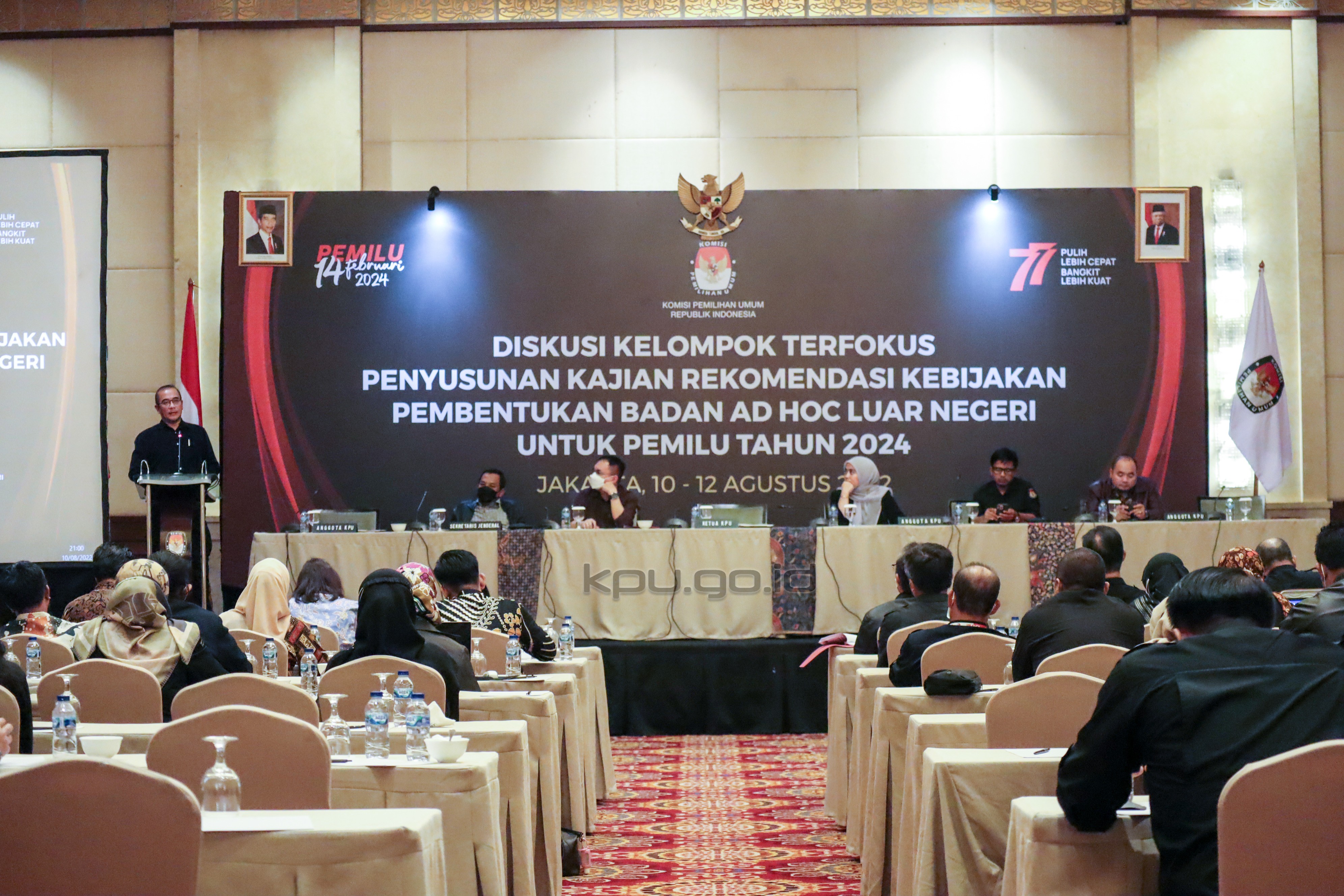Jakarta, kpu.go.id – KPU menggelar kegiatan Diskusi Kelompok Terfokus Penyusunan Kajian Rekomendasi Kebijakan Terkait Badan Penyelenggara Pemilu Ad Hoc Dalam Pemilu Serentak Luar Negeri Tahun 2024, 10-12 Agustus 2022 di Jakarta.